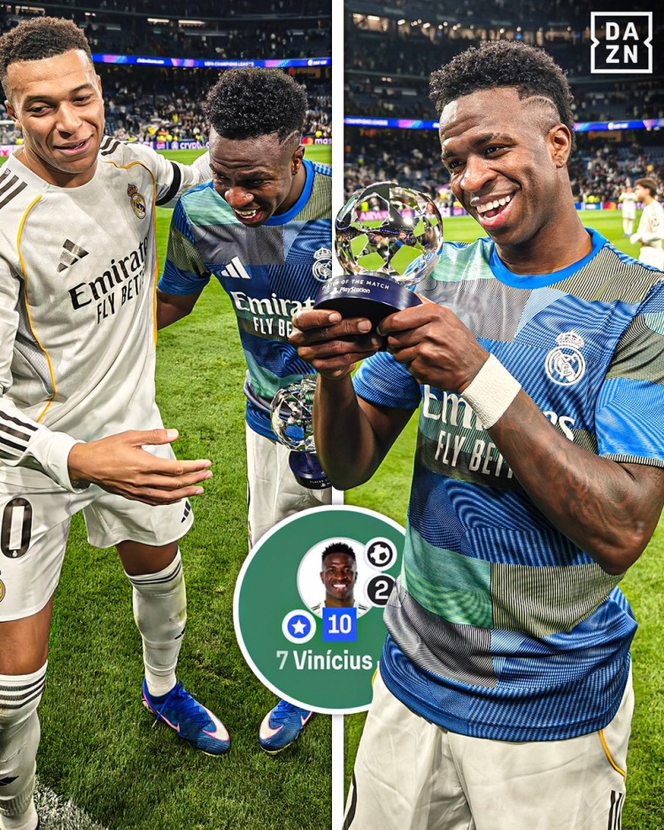 比赛收尾后,在维尼修斯凭借惊艳发扬荣膺欧冠单场MVP后,姆巴佩是第一批向前祝福他的球员之一。而在比赛启动前,开云体育官网伯纳乌球场还因球队近期在西甲和国王杯的发扬,向几名皇马球员发出了荒芜嘘声,维尼修斯曾是被嘘得最严重的球员之一。