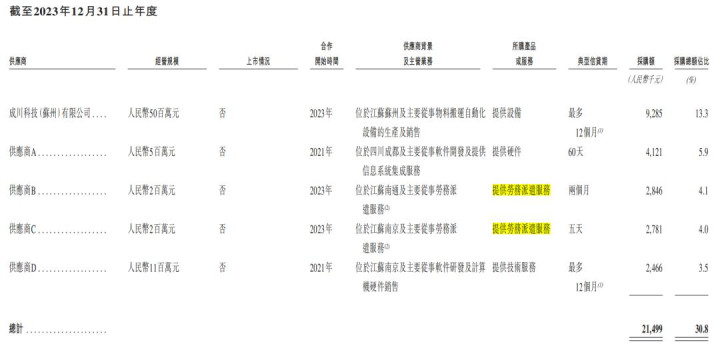 值得一提的是,哥瑞利的供应商期内一样发生变化,2023年和2024年的第一大供应商2025年不再为前五大供应商,第五大供应商D,在2025年景为第一大供应商,同期新增了应商E、F、G、H。2023年,哥瑞利还采购了部分劳务交代处事。