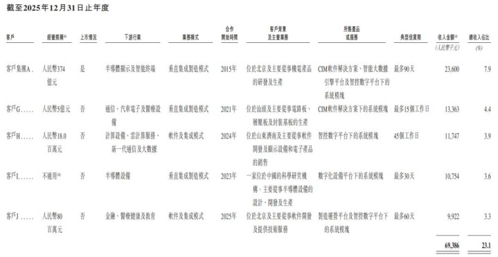 客户集团A与哥瑞利2021年9月达成合作,由哥瑞利设想并建筑一条计算月产能达5,000片的12寸动态就地存取存储器晶圆试产线措置决议,2022年-2025年,客户集团A离别向哥瑞利支付3471.5万元、3307.9万元、2232.2万元、2360.0万元购买铲轻柔处事款项,离别为第一、第一、第二、第一大客户。