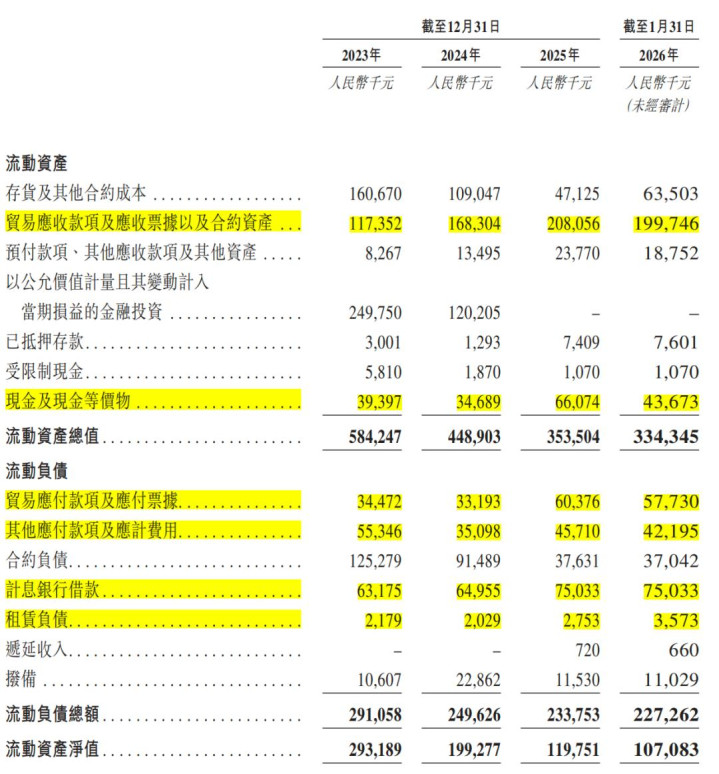 限制2026年1月31日,哥瑞利手中现款及现款等价物4367.3万元,短期债务7860.6万元,存在3493.6万元缺口。手中现款加上未动用银行融资所有4.31亿元,预测可督察将大意督察43.5个月的财务可行性。